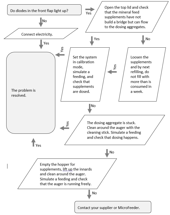 - “Allocation per 24 hours, grams” of mineral feed “#A” and “#B” for Group 1, and “#A” and “#B” for Group 2 are pre-filled, see the standard entries under “Settings”. If the individual cow should have more or less than the standard amount, this is entered in the fields for “Deviation”.